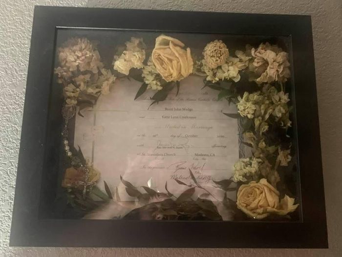 I had my wedding bouquet preserved by a local business, and I picked it up yesterday, so I figured I'd share some photos of the final product! There were enough flowers to fill two frames, and my husband's boutonniere is also in one of the frames....