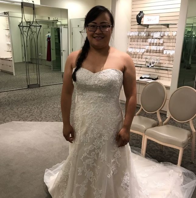 I'm so excited that my wedding is a little over three months away, can't wait to finally try on my dress again. Please post pictures of your dress! Here's mine!