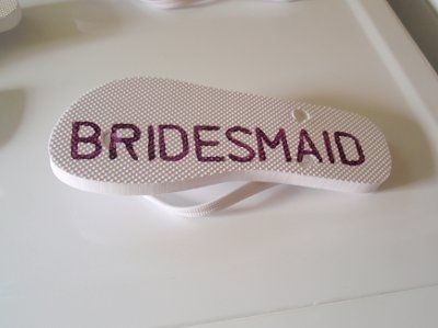 Well I decided to make my girls a bunch of different items for their bridesmaid gifs. One of the items is basic flip flops that I will decorate. Today I stenciled on words to the flip flop soles. I have to touch up certain areas that are too light....