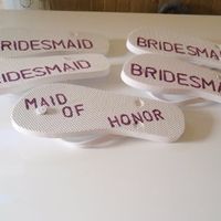 5817 days agoWell I decided to make my girls a bunch of different items for their bridesmaid gifs. One of the items is basic flip flops that I will decorate. Today I stenciled on words to the flip flop soles. I have to touch up certain areas that are too light....