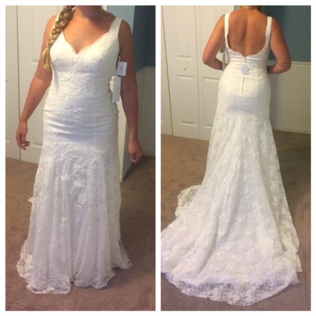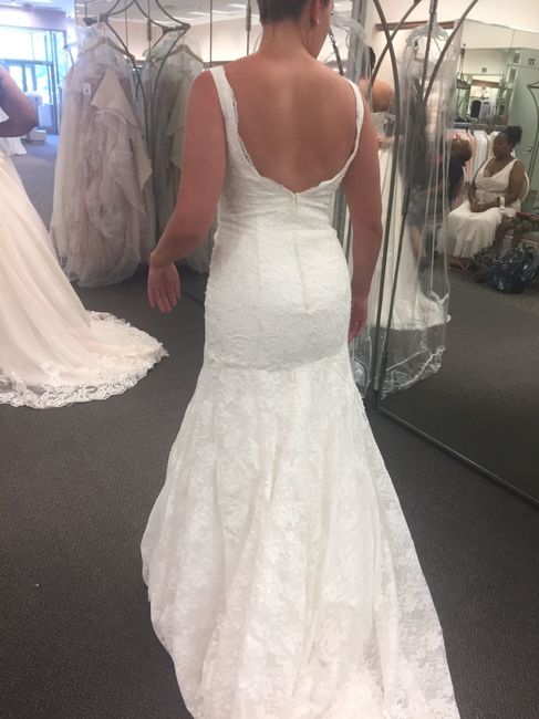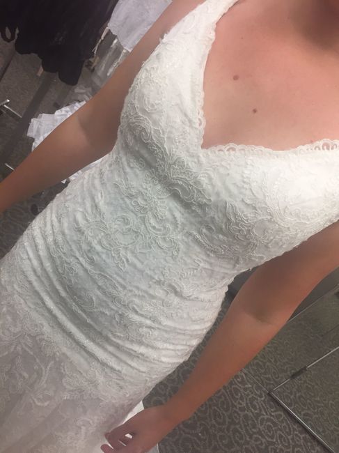 back. front of dress I wanna buy instead my current front/back of dress (too tight right?!) dang me. I never thought I would be one of the gals who had dress regret but here I am! All the tags are still on my dress but my local Davids Bridal doesn't...