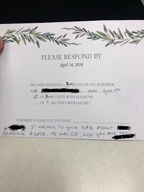 rsvps Just thought I'd share this lovely RSVP response with the WW community. I just loled when I saw it. Love that they changed the numbers I put.
