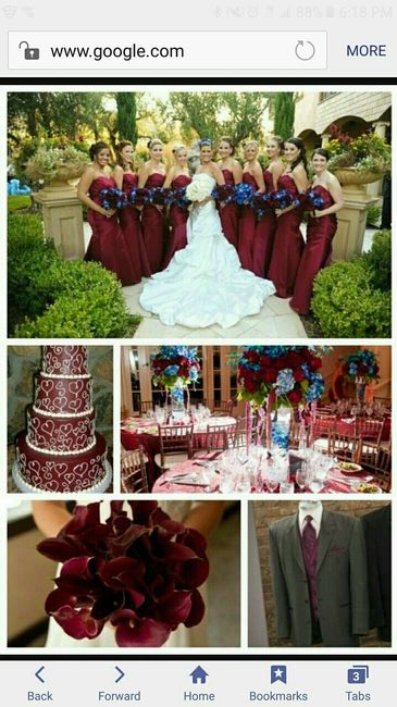 Please help! So, we're getting married in the fall and the ceremony will be outside and the reception inside. This issue is that the WHOLE venue is a maroon color, the bridesmaids are wearing charcoal grey, I'm not wear *white* and I have no clue...