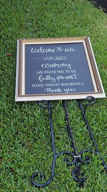 So I'm having an unplugged wedding which I'm not allowing people to take pictures during the ceremony and the ceremonial parts of the reception. I have been in so many events where everyone and their mother is on the phone and that's all the person...
