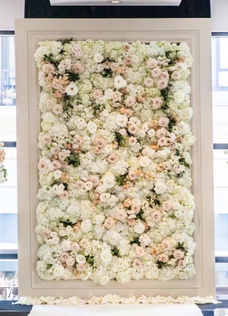 So I’m obsessed with flower wall. I’ve made small versions of this for our welcome sign and a few other signs. I’m curious if we should have the ceremony backdrop filled in like this? Or leave the inside alone and just make a flower “frame.”...
