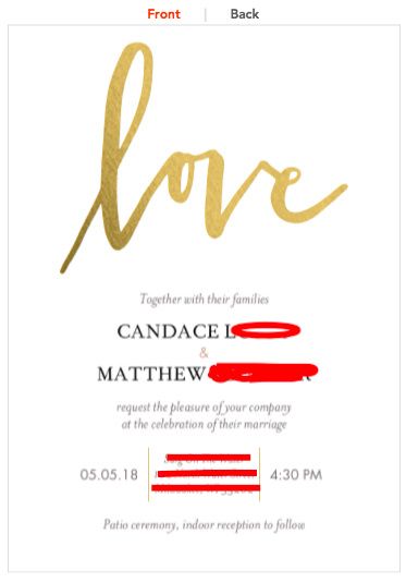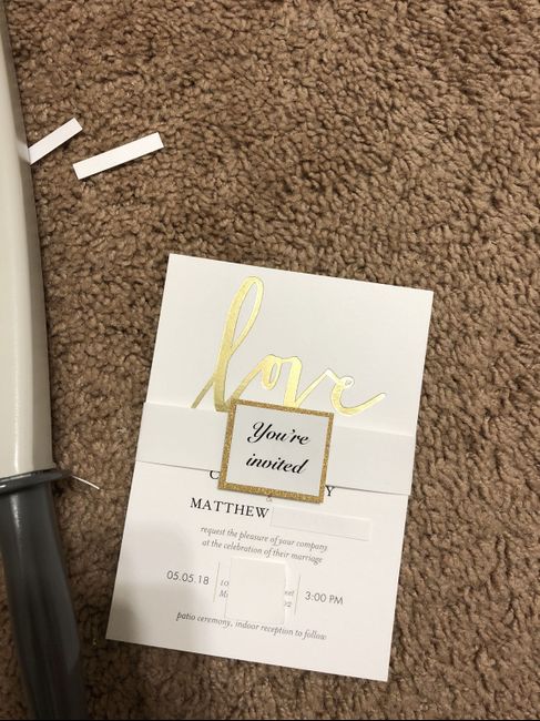 Invites should arrive tomorrow. Took a look at our order again so I could work on the belly bands tonight. Realized something.... 3:00pm is the time for the ceremony. "patio ceremony, indoor reception to follow" implies that cocktail hour is right...