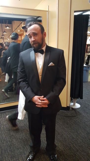 Trying to pick out the best tux/vest/tie combo for my FH to compliment my dress and be formal enough for our wedding. It is a black tie event, so he needs to be shaarrrp. FH is 6'1 or so, and very slender, and has a beard. The only thing I know is...