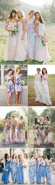 I am trying to find a store that sells the floral or 2 color (cream on top/ Bottom color I choose) of bridesmaid dresses and so far I can not find a store that really has those! I want to do something a little different like these! Any ideas?? 2...
