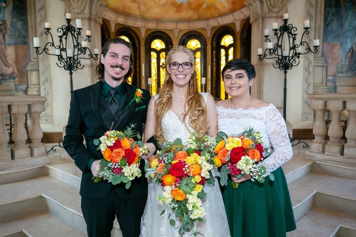 So my fiancé has 2 women in his bridal party, a Best Woman and a Groomswoman. I’m stuck on what to do with florals for them. Should they wear a boutonnières like the rest of the men or carry a bouquet like the bridesmaids? They both will be in black...