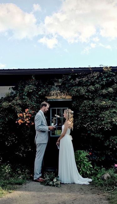We are married and we are so happy! Who else had. 9.15 wedding 😊 what a wonderful day celebrating with friends and family. This photo is of ya reading our vows to each other. 💕