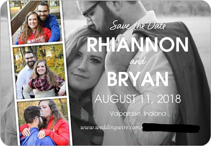 So on a Save The Date, it usually lists the couple's names, the wedding date to be saved, and the wedding location. In addition to "Save the Date", "Save our Date" or something along those lines. I also want to say something about a "formal...
