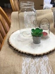 I'm starting to piece together my Centerpieces and I know I'm doing the wood and mason jars probably will wrap with burlap and lace and I know I will put real flowers in them I was so excited to find the little tin buckets with fake succulents in...