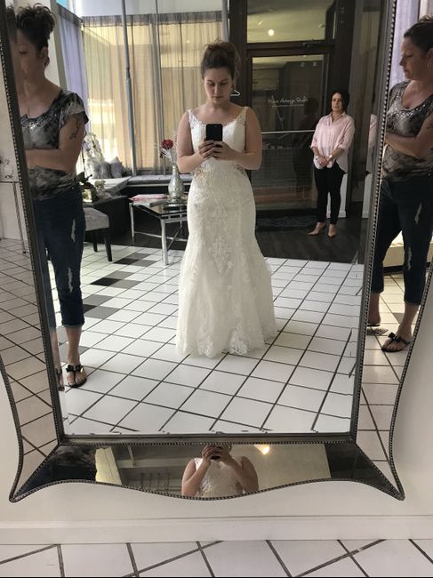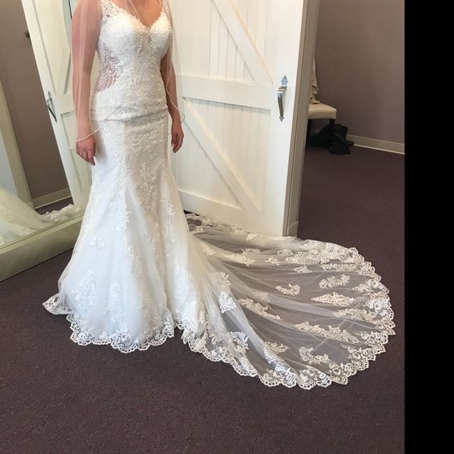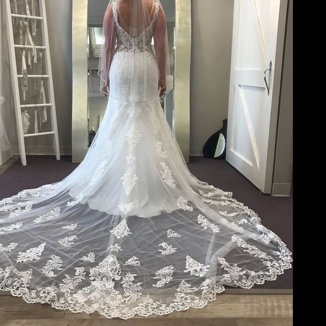 When should the last fitting appointment be? The alterations lady has mine set for June 12th and my wedding is July 28th Here is a photo from today’s second fitting with the bustle up