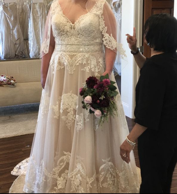 I’m going to try my dress in for the very first time tonight! I’m terrified it won’t fit. I bought it December 2nd and was in between 2 sizes, so they ordered the size up. They measured me twice and knew what they were doing. I think my lower half...