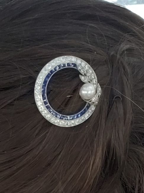 Hi, I just had my hair trail yesterday and this is a broach the my grandmother was going to let me borrow for the wedding. She just passed away in early February so I definitely am going to wear it and I want to show it off. I just feel like it is...