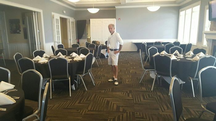 We're having our reception inside of a golf country club. Its a really nice place but the area of our reception has such drab office looking carpet and it's just kind of bland. Of course we're going to have decorations to spruce it up, backdrops...