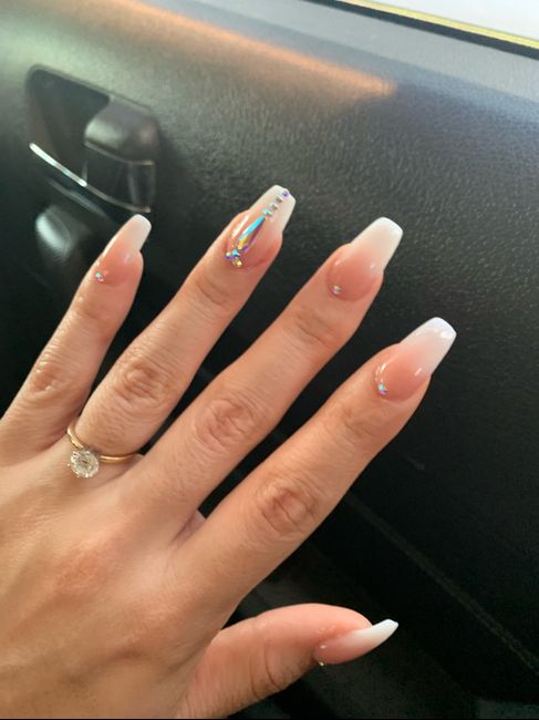 Got my nails done today and wanted to start doing “bridal” looks to see what I like. I think I nailed it on the first try! What’s everyone else doing for nails?