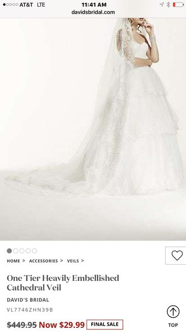 Hey all! Where are you all buying your veils? The one in store that I like is 350! SO looking for other options on rhinestone cathedral veils and if you recommend a place on etsy let me know the shop. Thanks!