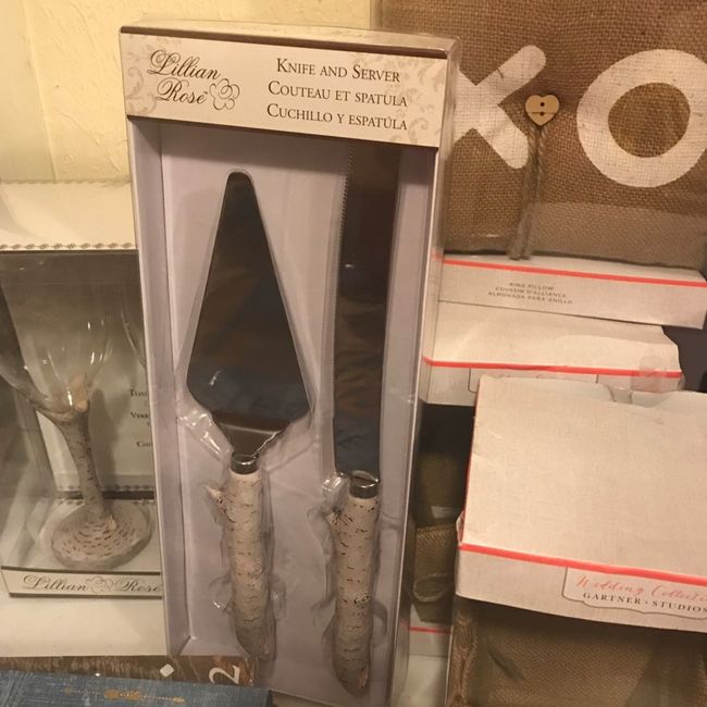 FH's grandma surprised us with the champagne flutes and cake cutting/serving set we had been eying as a wedding gift! They're so sparkly *heart eyes* I wanted to share pics here since obviously no one IRL cares hahaha Anyone else wanna post pictures...