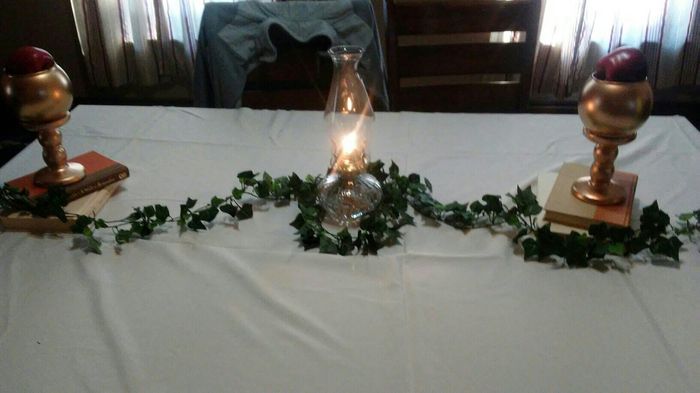 Hi! I'm pretty helpless when it comes to decorating. I've attached a picture with what we have so far. The apples will be replaced with red Hershey kisses. Any idea to help? Colors are burgundy and gold. We are getting married in an old estate built...