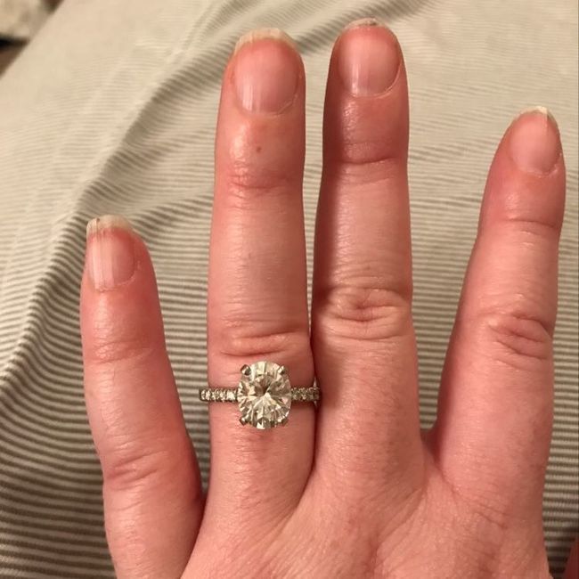 Post your engagement rings! With or without wedding bands I could look at them all day. I just gave mine up to get sized and it is taking a long time, 2 weeks thus far. Here is mine, taken right as I was dropping it off. (Excuse the blurry photo,...