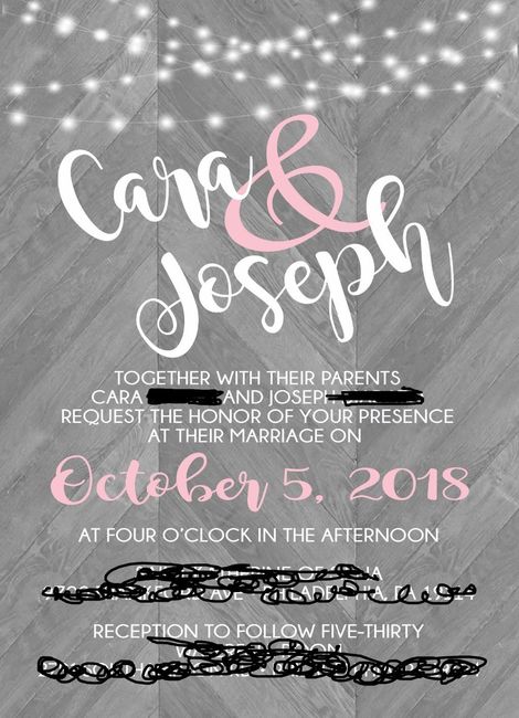 Invite This is the proof of my wedding invite. Cut for some reason it doesn't click. Is there a different way this could worded. I didn't want to list my parents names on the invite as I have step parent and don't want to have a whole list. My name...