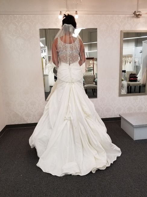 Hi ladies. Today was my 2nd fitting for my dress. And I wanted to share what it looked like in hopes I can get opinions if it is flattering or not? Please take into consideration my young daughter took the pics and sometimes the gown is not in it's...