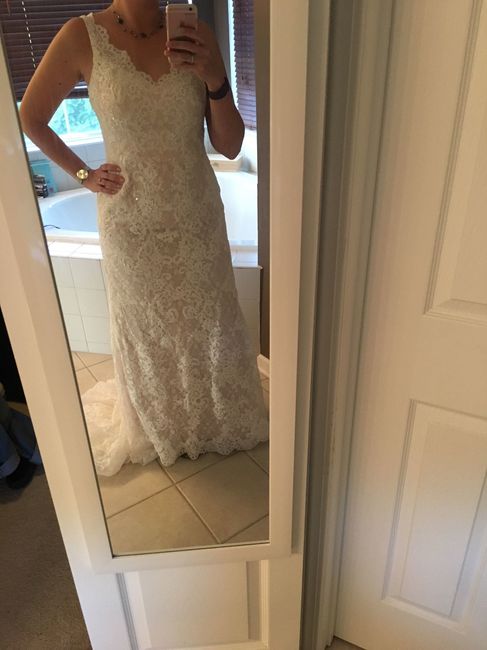 Ok so when I picked up my dress from DB a few weeks ago I tried it on and my daughter took some pics. I've looked at them a few times and started having some dress regrets. I'm home alone tonight and decided to pull the dress out and put it on with...