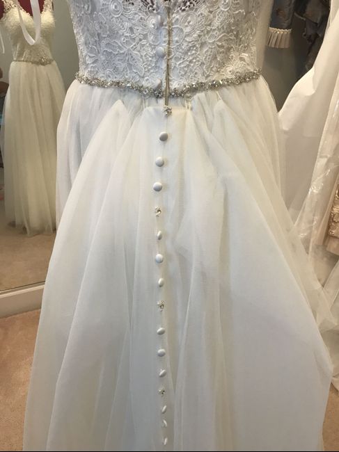 What do you think of my bustle? If you saw my last post, this is the new bustle that my seamstress made. It doesn’t lay entirely flat but it is better than before and now you can see the buttons. She said this material was challenging to bustle. ...