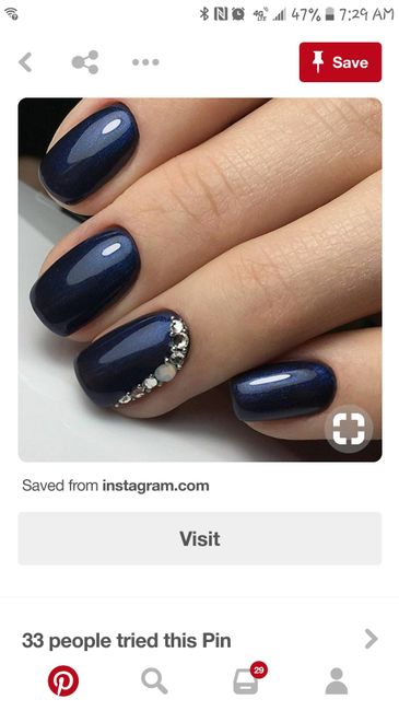 How did you have your nails done for your wedding? If you're still planning, how do you plan to get your nails done. Feel free to post your photos/inspiration photos below. I'm thinking about having my nails polished a burgundy/wine color to match...