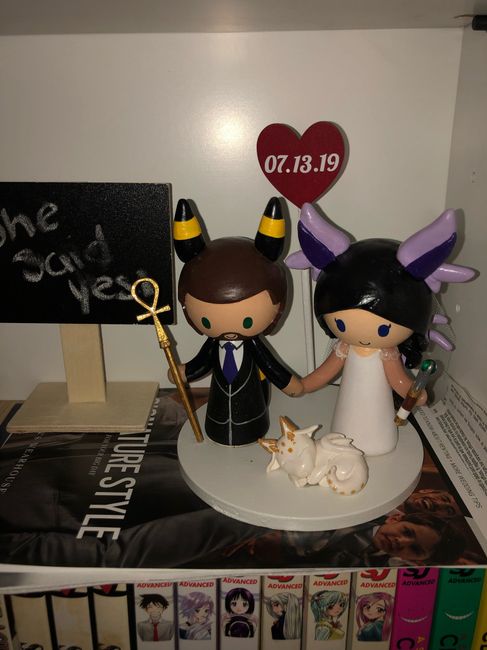 2514 days agoWe got our custom cake topper in!! It’s so cute. I’m so excited! The little dragon is for our bearded dragon Charizard What are you all having for your cake topper?