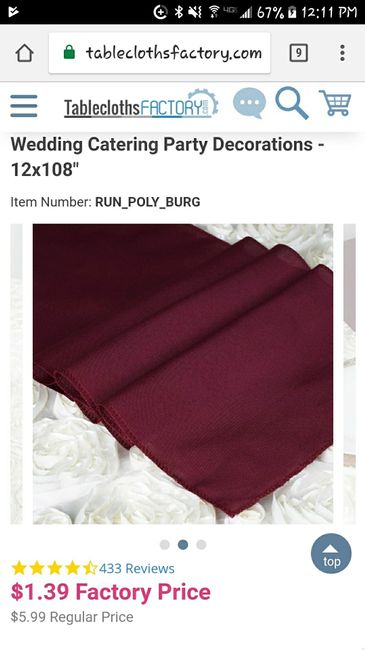 I have 5 months left till my wedding and I cannot for the life of me find my color in a table runner. My pictures above are the diy centerpieces and then the napkins(toupe) satin and ivory satin tableclothes. I wanted a deep red runner but when i got...