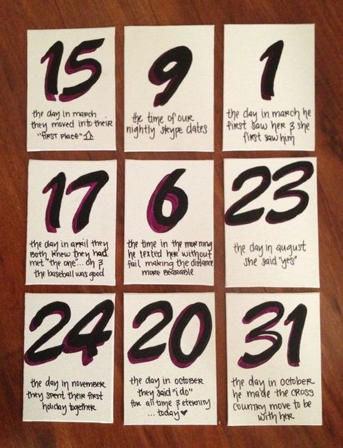 We are going to use significant numbers in our lives as our table numbers. I have gathered a bunch of ideas such as photos attached. I was wondering if anyone could add any other inspiration scenarios referencing numbers. Thank you in advance!...