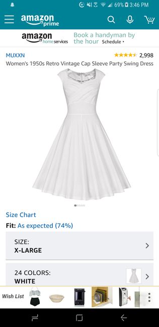 So my fiances suit is very flashy and out there, kind of like him. I love the suit and i love the look but i am having a hard time finding a dress that doesnt clash. I bought a white retro tea length dress, but now i am having second thoughts. I kind...