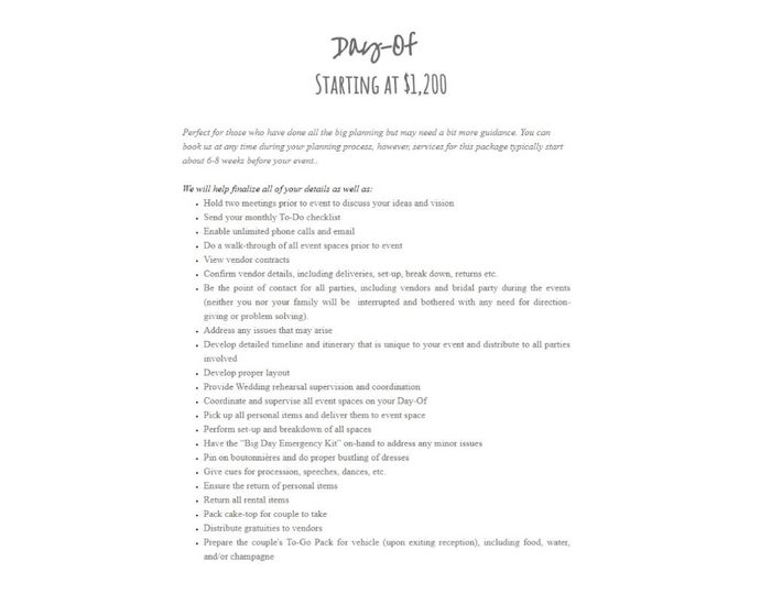We hired a DOC through the venue and I just found out today exactly what they will and won't do. Sounds like basic set up, coordination of vendors, keeping us to our timeline, and coordinating venue staff. We only have 2 hours prior to the start to...