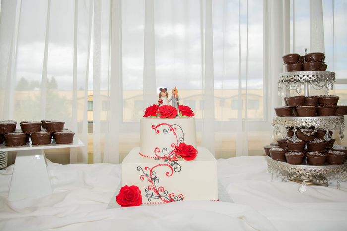 Alrighty! I'm trying to get a ball park as to what seems to work best price wise, left over wise, and just what seems to go better with the guests! Did you do a big traditional cake or one small cake for you and your hubby to cut and cupcakes for the...