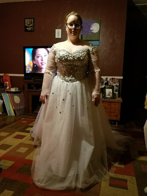 I bought this dress online and I absolutely love it! I still need to get alterations done to it. I have always dreamed of a veil and a floorlength one at that! But looking at the dress I'm not sure if a veil will look good with it. Opinions?