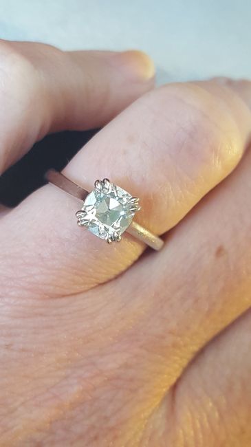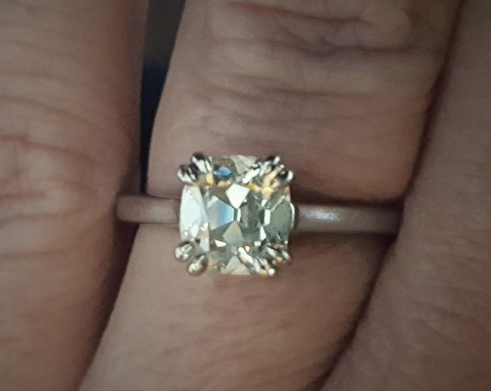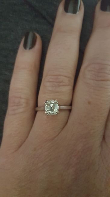 Post your engagement rings! With or without wedding bands I could look at them all day. I just gave mine up to get sized and it is taking a long time, 2 weeks thus far. Here is mine, taken right as I was dropping it off. (Excuse the blurry photo,...