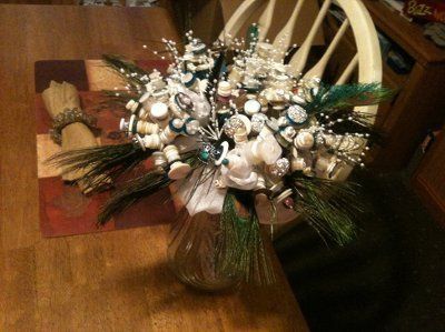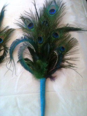 so i started trying my DIY idea for my centerpieces today. so far it looks pretty good but pretty plain until i get the peacock feathers to put in it and the ribbon. ill post a pic of the progress so far. so ill put two peacock feathers in it. and a...