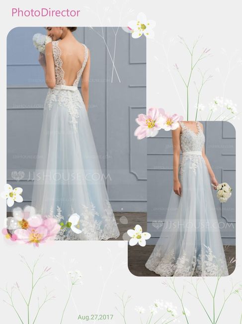 I love the idea of a wedding dress in blue. I've found several dresses that I like, but nothing compares to this powder blue gown. I'm so in love with it. My fiance prefers a white or ivory dress and I can get the blue in white, but I just adore the...