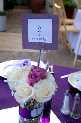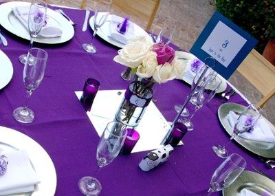 I decided on centerpieces which are basically candles on a round mirror. Well, there's a good chance that we'll have to get rectangle tables & it would bug me to have a round centerpiece on a rectangle table. (sorry I don't have any pics of the...