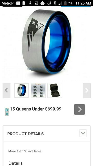 My fh loves the patriots. He is a super fan. I thought about being unique and surprising him with a patriots wedding band. What do everyone think.