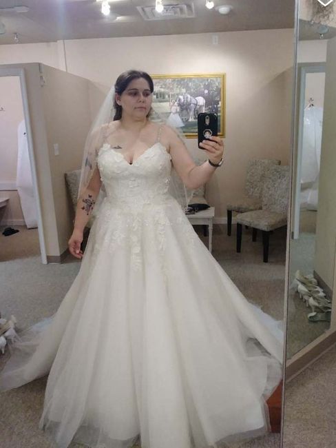 While dress shopping this weekend with my 7 family/soon to be family members, I tried on a few dresses to humor them! I wanted a fitted, more plain, minimal lace/beading dress and this is the gown they handed me (attached). I came out and all the...