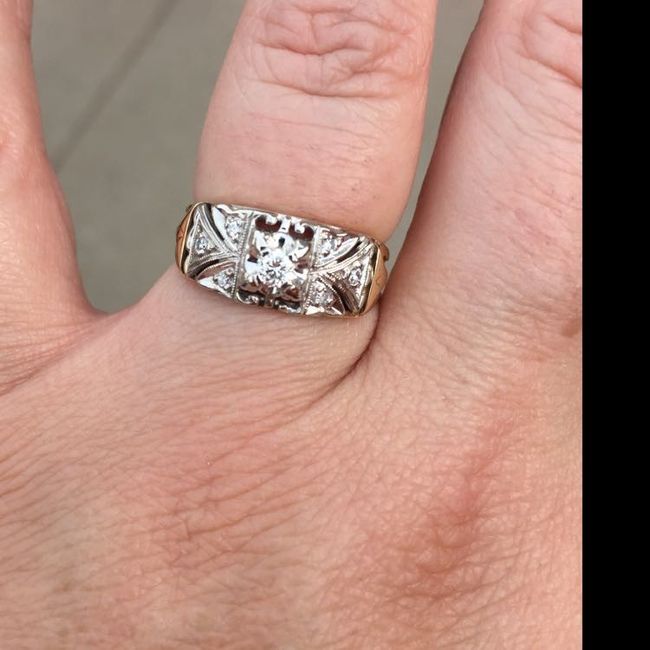 Post your engagement rings! With or without wedding bands I could look at them all day. I just gave mine up to get sized and it is taking a long time, 2 weeks thus far. Here is mine, taken right as I was dropping it off. (Excuse the blurry photo,...