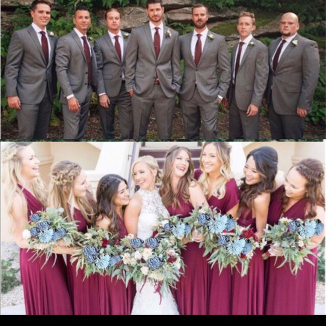I was wondering what everyone’s opinion was on the groomsmen matching that bridesmaids? Should their tie match their dresses, or their flowers? My colors are burgundy and dusty blue, I thought of making the men’s ties match the dusty blue flowers in...