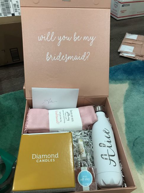 It took me a month to curate the contents of the box. I wanted things that they would actually use and as personalized as possible! Most of the stuff I got from Etsy. The rose gold box has white lettering with there name/nickname written outside, a...