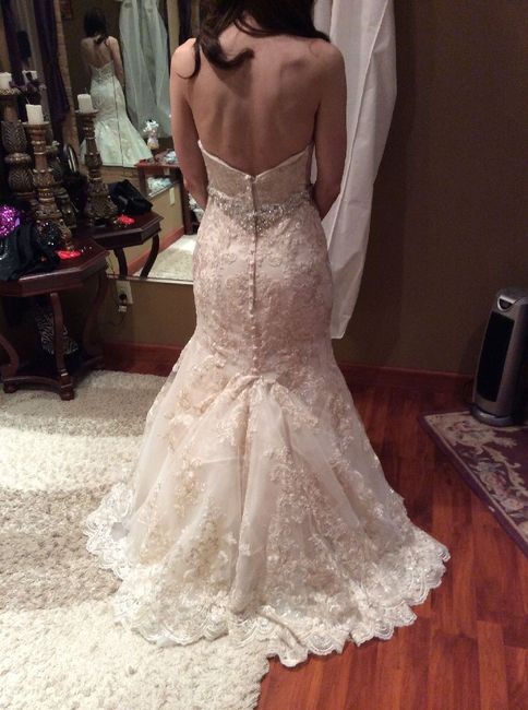 I was told by one alterations specialist that I can only do a simple over-bustle in order to not lose the detail of my dress, but I'm not sure how I feel about a one point over-bustle, especially not over or right under my rear end lol. I was leaning...