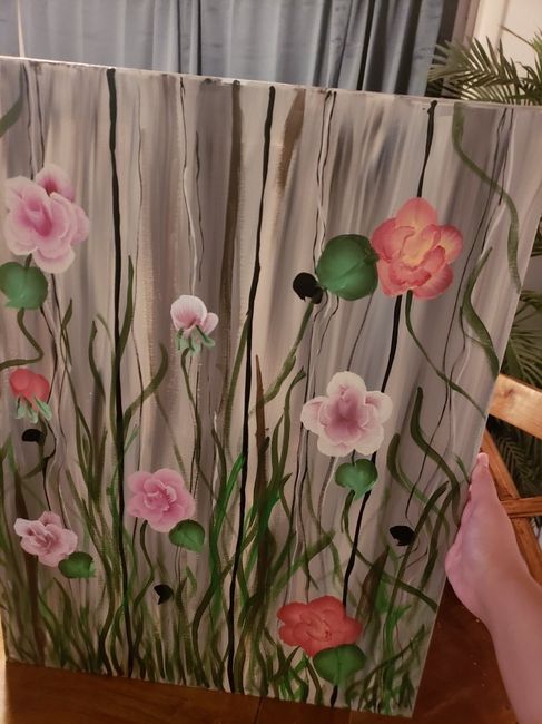 Alright yall....this is my first DIY painting for the wedding. Rustic theme. This is our welcome sign and I still have to write on it. I spent hours watching canvas tutorials on youtube. What do you think?? Honest opinions! Thank you!