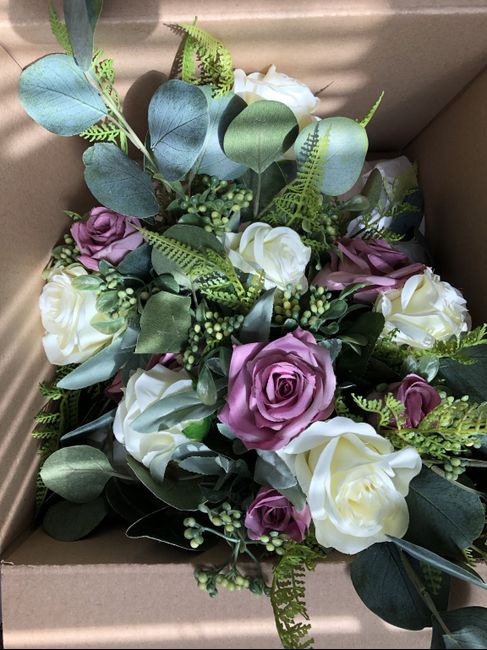 Got a picture of my bouquet today! I’m worried the roses are too dark? I don’t actually have any set colors since I’m going mostly greenery and ivory. What are y’alls thoughts?