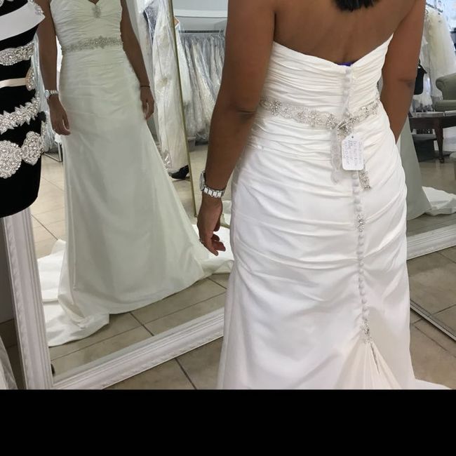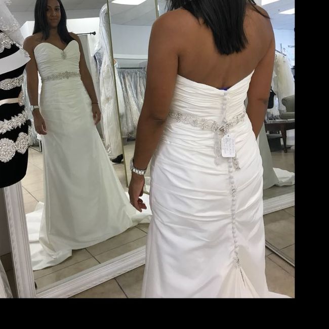 need an honest opinion ladies! I initially wanted a mermaid look but did not like the poofiness at the bottom on me. I wanted a lot of bling and some lace but ended up with the opposite. This dress fit nicely and still needs to be altered and pics...